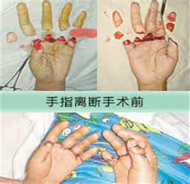 4、挤压性断离:多由过重的机械、铁板、石块挤压或打击或被搅拌机绞轧肢(指)体造成。断离面不规则,肢(指)体离断两端组织损伤严重,有时呈多发性断离,再植成活率低,再植后功能亦较差。