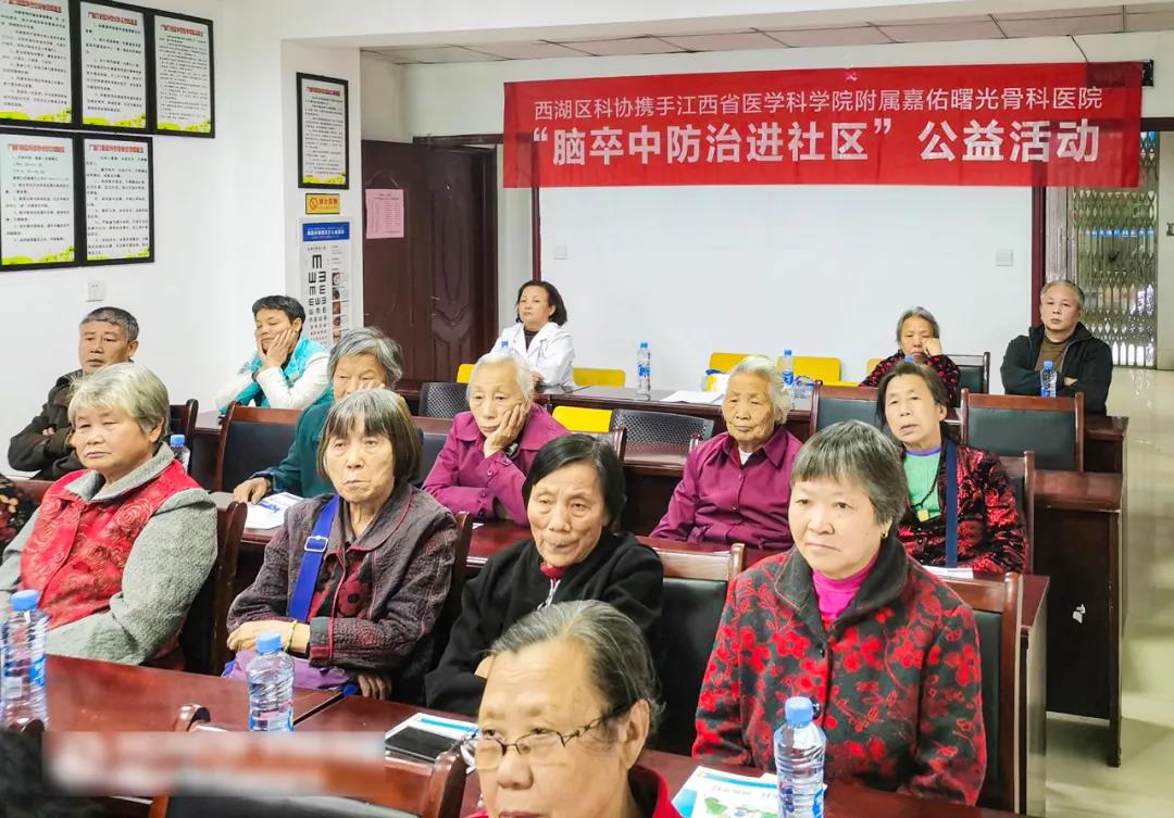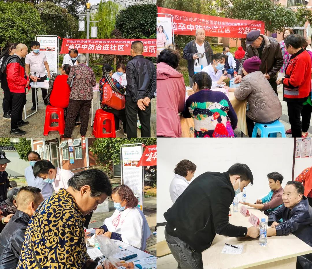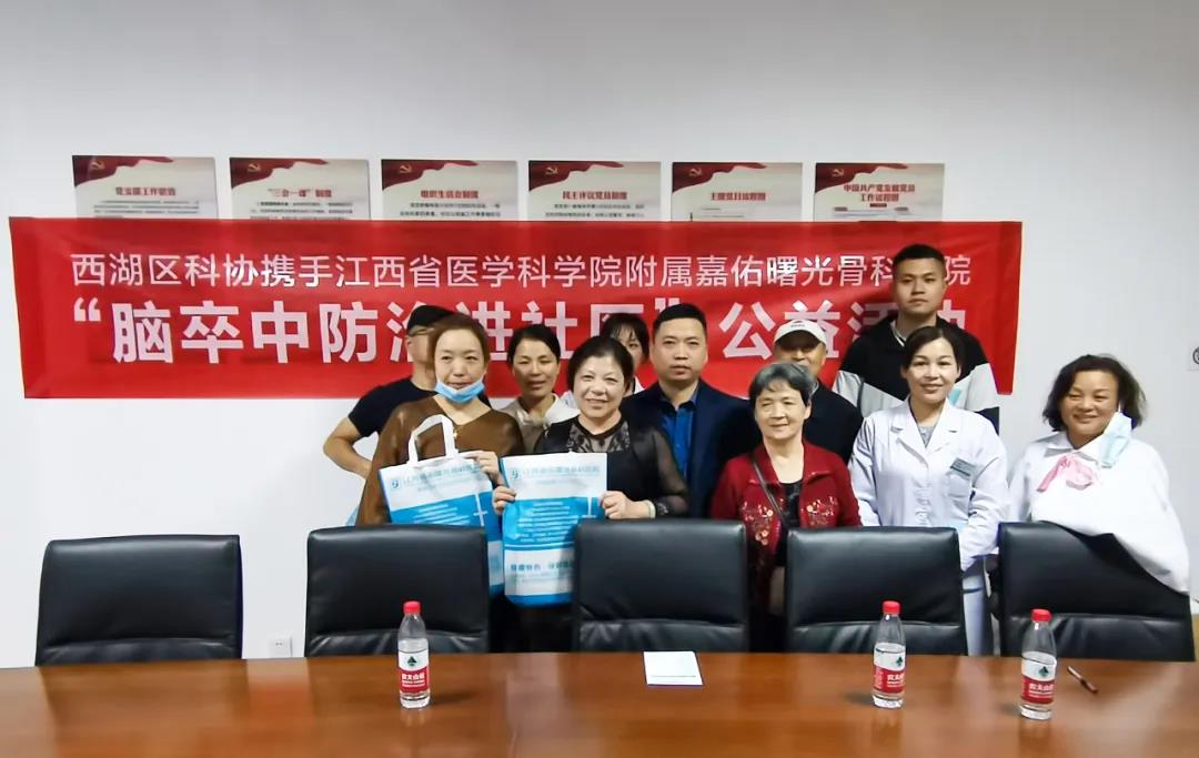 2020年10月29日是第十五个“世界卒中日”,主题是“医体融合,预防卒中”,口号是“科学运动、健康生活”。为贯彻落实《健康中国行动(2019-2030年)》有关要求,推进脑血管疾病科学防治工作,南昌市西湖区科协携手江西省医学科学院附属嘉佑曙光骨科医院共同开展了“脑卒中防治进社区”系列公益活动。