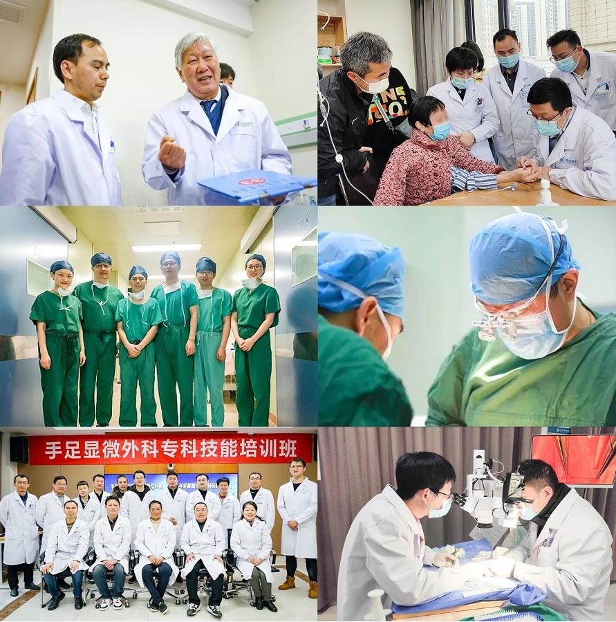 建站以来,院士工作站驻站专家入站工作20余人次,组织开展专家门诊、教学查房、手术演示等临床科研实践,提升医务人员技术水平;医院定期派遣一线医护前往上海华山医院进修学习,培养医疗技术骨干;迄今,共举办三期省级手足显微外科技能培训班,培训学员30余人次,对青年医师进行技术帮扶,实现优质资源共享。