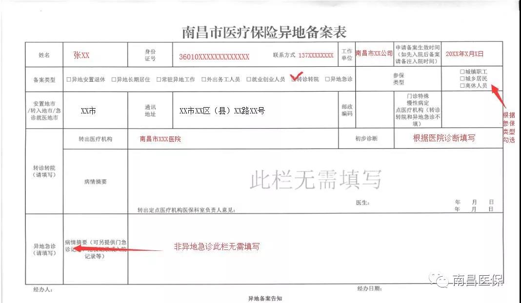 参保人员因病情需要转诊转院外地就医时,需填写《南昌市医疗保险异地备案表》在表格备案类型中勾选“转诊转院”并在对应栏目中填写转诊基本信息,内容填写完整后报我市参保地医保经办机构办理备案登记。